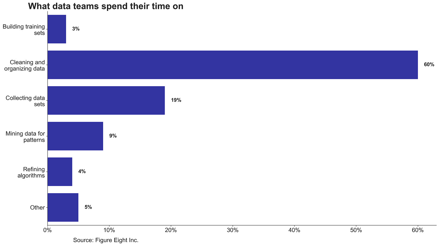 It's not the sexiest part of data science, but it's absolutely essential. Big Tech gets this, and they're not afraid to invest big bucks in making sure their data is squeaky clean. Entire departments are dedicated to the task, because they know that without clean data, their fancy algorithms and predictive models are about as useful as a flip phone. And while cleaning data may not be the most thrilling part of the job, it's a heck of a lot more enjoyable than sifting through endless piles of garbage data. In fact, according to a survey, 57% of my fellow data scientists said that data cleaning was their least favorite part of the job. But hey, at least we're not spending 80% of our time on it anymore, right?